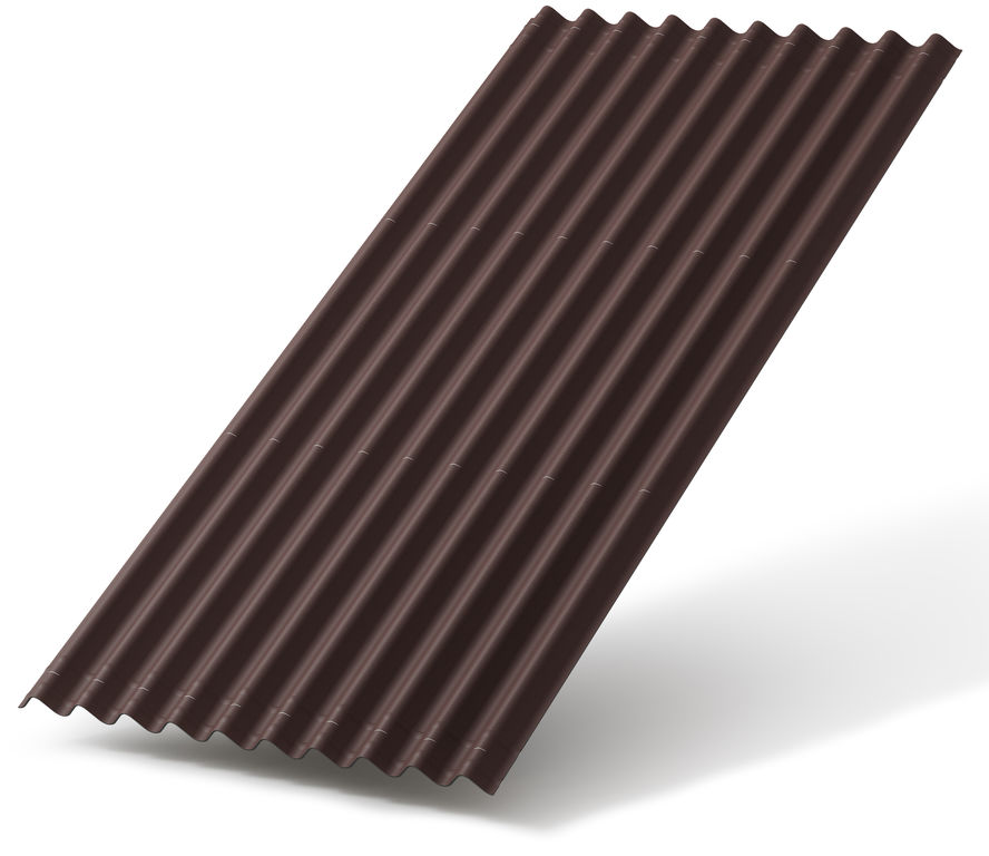 DIY — 2000х760 мм, количество волн — 8, толщина — 3 мм. Ондулин Компакт — 1000х750 мм, толщина — 2,6 мм, количество волн — 8. Шаг между волнами у всех видов одинаковый — 95 мм. - Тон. Всего 4 варианта: черный (сланец), коричневый, зеленый, красный. Цвета кровли Ондулин Черепица те же, за исключением черного. Материал прокрашивают по массе, на срезах пигмент должен быть равномерным, насыщенным.