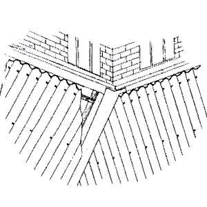 ![]() Оформление бокового стыка кровли | 16. Оформление бокового стыка кровли, если он имеет место примыкания к стене, расположенной вертикально по отношению к стыку, производится при помощи ендовы, изготовленной из ондулина. В месте стыка прокладывается надёжная изоляция. |