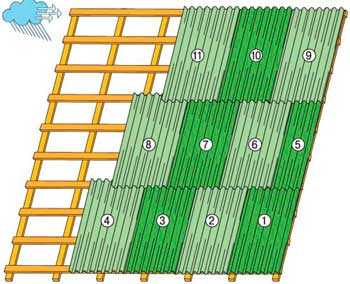 Нахлест, как концевой (вертикальный по короткой стороне листа), так и боковой (горизонтальный по длинной), зависит от уклона кровли: