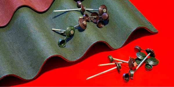 - Специальные гвозди с цветными шляпками, выполненные из углеродистой стали, устойчивые и герметичные. В упаковке 100 штук, диаметр — 3,55 мм, цвет шляпки подбирается под цвет листа (на один лист уходит примерно 20 гвоздей).