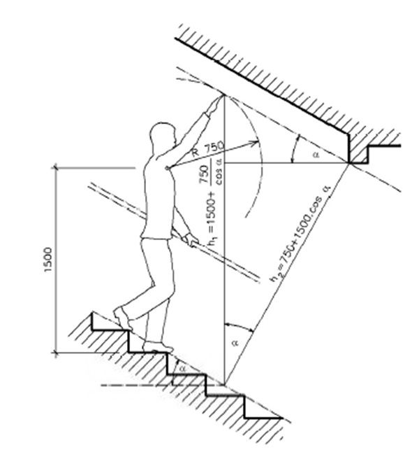 общему подъему - подъемув случае стандартного крепления.Наконец, можно найти угол наклона лестницы: