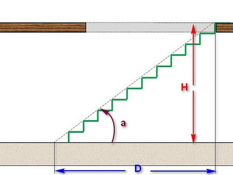 Угол : угол наклона лестницы.