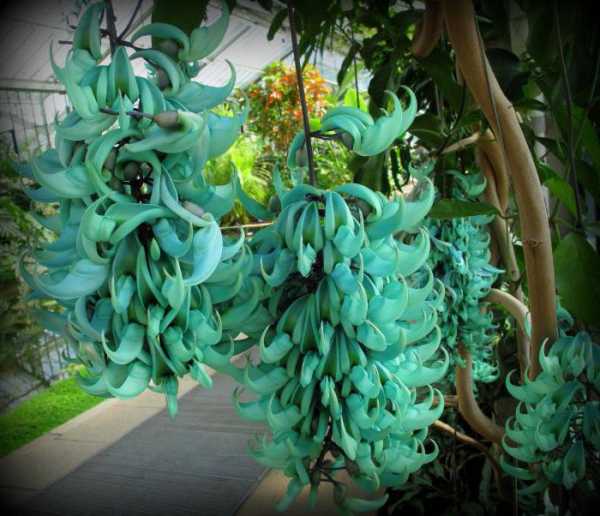Многие самые красивые растения прибыли к нам издалека, как, например, эта тропическая декоративная лиана, относящаяся к семейству бобовых. Это уроженец тропических лесов Филиппин. Цветки окрашены в насыщенный бирюзовый цвет и собраны в эффектные кистевидные соцветия, длиной почти полтора метра.