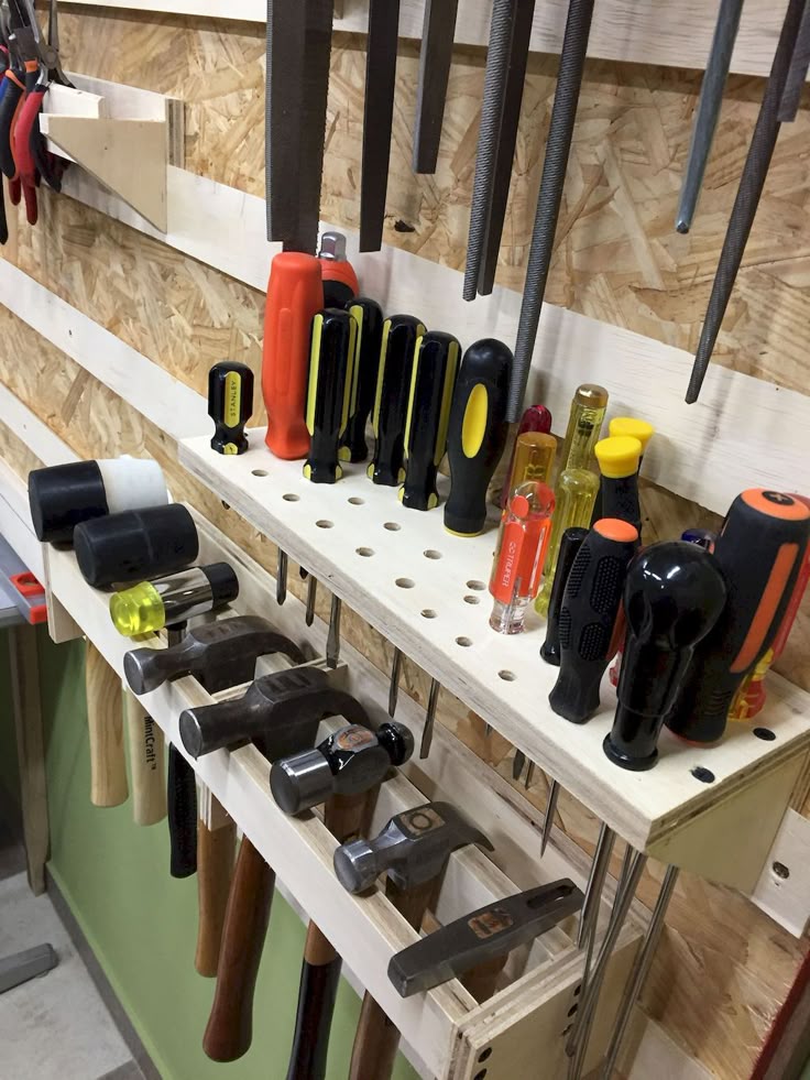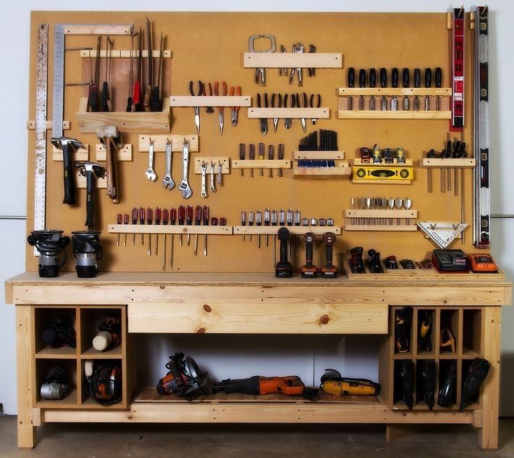 Если у вас нет закрытых хранилищ и тонны площади, вам нужно использовать стены. Храните только те инструменты и расходные материалы, которые вам действительно нужны, чтобы не загромождать стены.