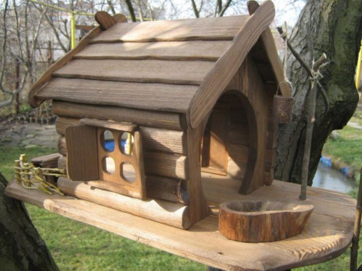 Из дерева можно создать кормушку для птиц любой формы