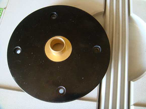 Самым простым, чаще всего изготавливаемым приспособлением, является накладка на подошву круглой формы. Большинство фрезеров имеют две параллельные кромки, упрощающие конструкцию упоров для обработки прямолинейных заготовок, что при работе с накладными шаблонами требует четкого позиционирования инструмента. Несложная круглая накладка на подошву позволит эту процедуру сделать абсолютно простой.