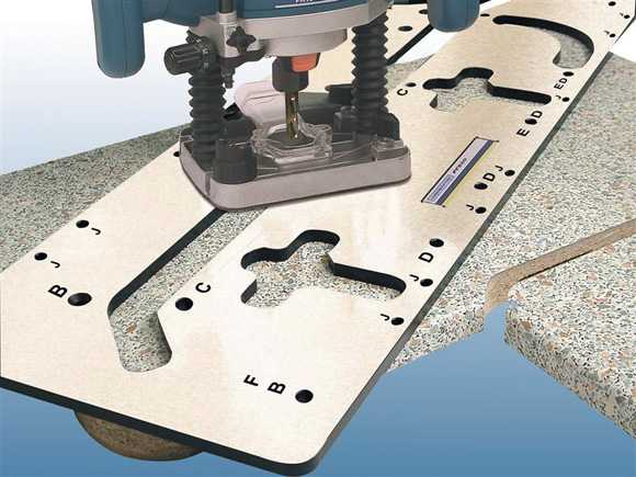 При ее использовании важно выставить верхний шаблон на расстоянии от края накладки до режущей кромки фрезы и нужную глубину погружения.