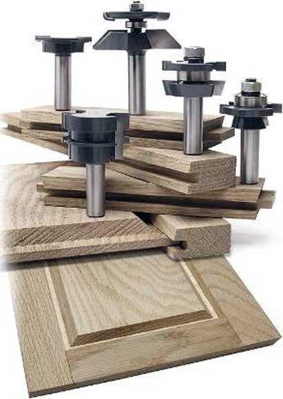 Фрезы для обработки кромок.За шаблон можно взять уже обработанную доску или другой, ровный предмет. Причем длина шаблона должна быть больше длины обрабатываемой детали, как вначале, так и в конце обрабатываемой заготовки. Это позволит избежать неровностей вначале кромки и в ее конце. Здесь самое главное, чтобы шаблон или предмет, выполняющий роль шаблона имел гладкую и ровную поверхность. К тому же его толщина не должна быть большей зазора, находящегося между подшипником и режущей частью.