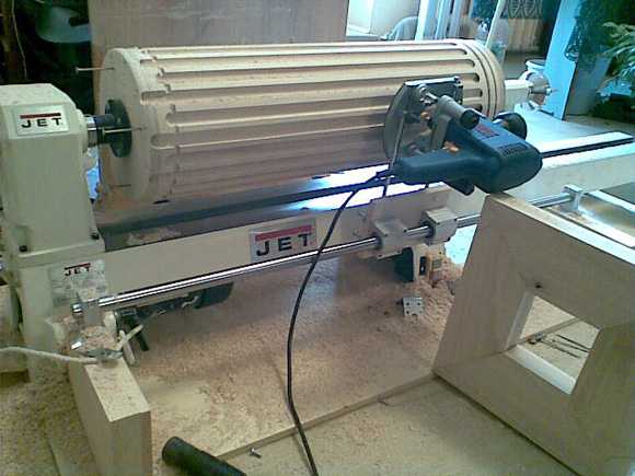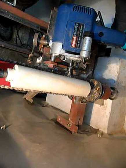 Ну, или на худой конец, сконструируйте что-то похожее на приспособление, изображенное на следующее фото. Здесь главное – идея – получение круглого погонажа при помощи ручного фрезера, а ее воплощение достаточно многовариантно. Кстати, если придумаете свою конструкцию – предлагайте, обсудим и поделимся ею с посетителями нашего сайта.