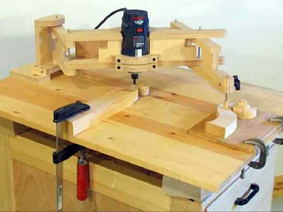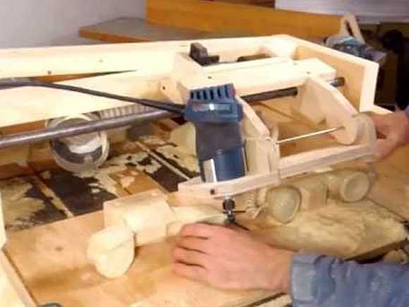Понятно, что для получения точной копии объемной модели, придется ее в процессе работы поворачивать и многократно взаимно позиционировать с ней заготовку, но для людей творческих – это не самая невыполнимая задача. Понятно, что при самостоятельном изготовлении подобного приспособления вы предусмотрите крепление именно для своего фрезера и скорректируете прочность конструкции под его вес. Но результат работы того стоит.