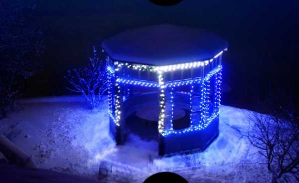 Также возможен вариант использования светодиодной ленты, под которую не придется выпиливать отверстия. Её достаточно грамотно расположить внутри беседки, после чего она будет создавать некоторый декоративный уют.