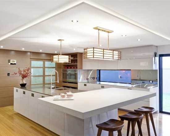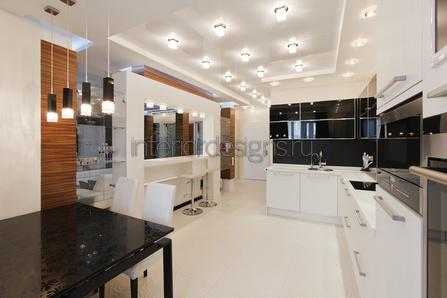 Фото дизайна кухни-гостиной – правила организации освещения