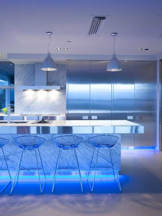 неоновая подсветка в интерьере кухни