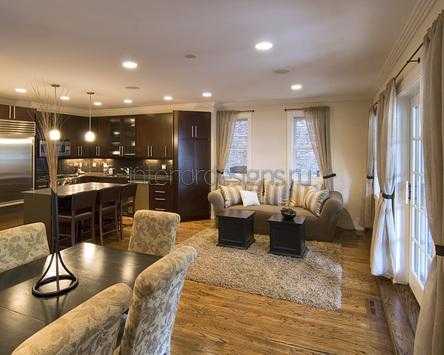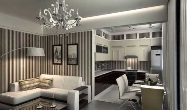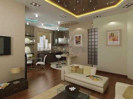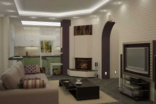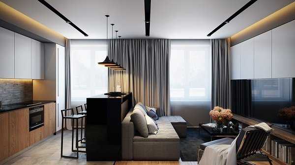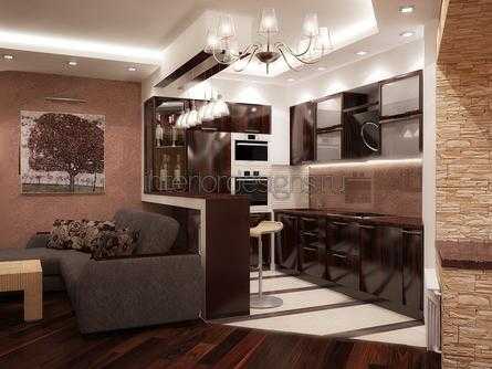 Интерьер кухни совмещенной с гостиной: зонирование, перегородки, освещение, фото
