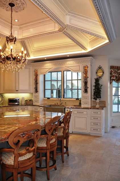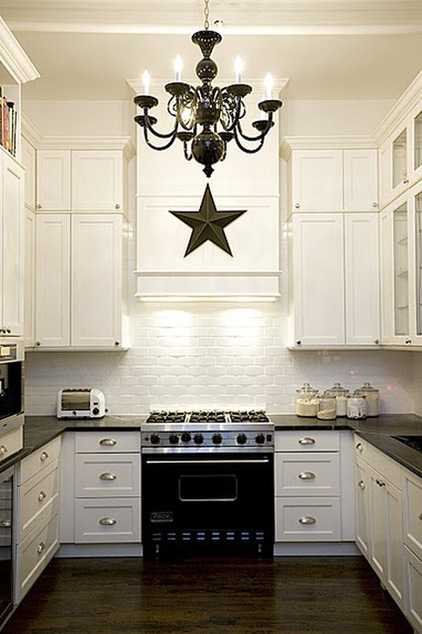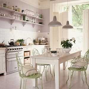 Не зацикливайтесь на присутствии единственного источника света. Люстра, висящая под потолком, не решит проблемы. В скудно освещенной кухне никогда не будет комфорта, поэтому экспериментируйте и решайте, в какой зоне и какие типы ламп вы будете использовать. Следите за тем, чтобы свет, предназначенный для освещения рабочей зоны, не слепил, когда вы расположитесь за обеденным столом. Точно также и потолочный свет не должен бить в глаза, если вы попробуете заглянуть на верхнюю полку шкафа.