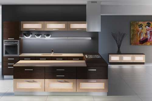 Нуждается в хорошей подсветке и варочная поверхность. В этом случае подходящая лампа встраивается в кожух висящей над ней вытяжки.