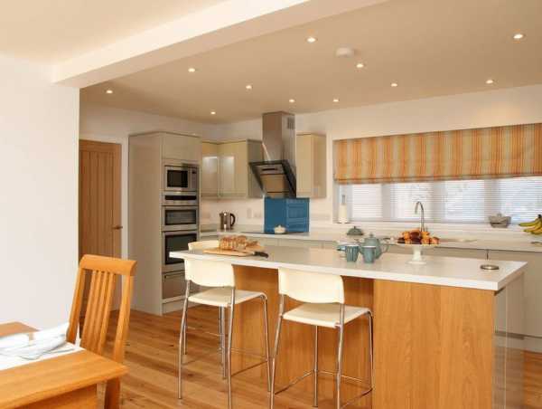 – чем просторнее кухня-гостиная и чем выше в ней потолки, тем важнее иметь верхний свет для каждой функциональной зоны