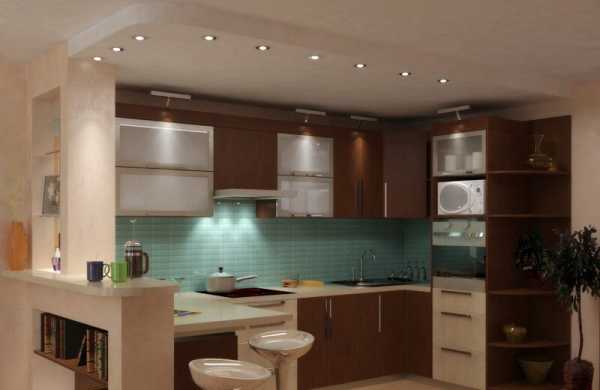 Организация освещения в кухонной части комнаты