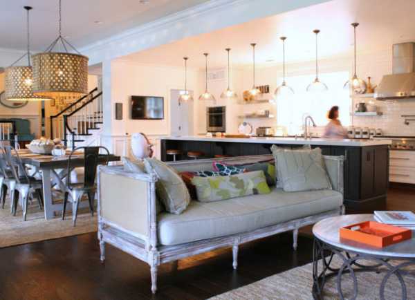 – убедитесь, что планировка мебели в вашей кухне-гостиной удобна для жизни, и только потом планируйте светильники и люстры