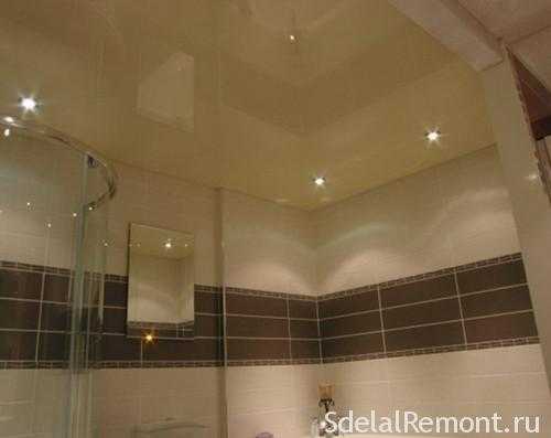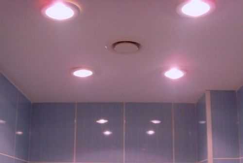 Освещение в ванной комнате с натяжным потолком: точечные светильники в интерьере