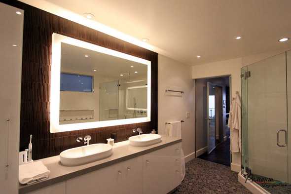 Зонирование помещения при помощи освещения дает возможность выделить в ванной зону для принятия ванны или душа, отдыха и умывания. В каждой из этих зон должен быть свой уровень освещенности.
