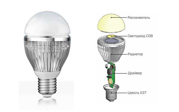 Конструкция светодиодной лампы с цоколем Е27