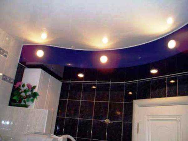 Правильно выбранные светильники для натяжных потолков в ванную комнату необходимо качественно смонтировать. Накладные светильники монтируются на поверхности ПВХ-потолка. В данном варианте допустимо применять любые типы ламп. К монтажу встроенных светильников на базовый потолок следует приступать до натяжения ПВХ-полотна, а финишная установка элементов освещения производится после стадии натяжения всего потолка.