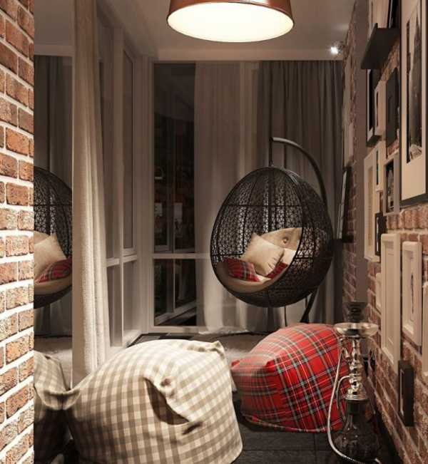 Хорошо на такой балкон впишется кресло-качалка из ротанга или лозы. Если для такового не найдётся места, то выходом станет кресло-гамак. Плетёная мебель, благодаря своей внешней эстетике и приближенности к природе, заряжает определённой энергией и помогает расслабиться.