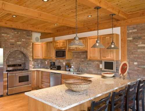 - Декоративный камень и яркое освещение – практически не сочетаемые понятия. В связи с этим, в кухне, отделанной декоративным камнем, специалисты рекомендуют организовать приглушенный, мягкий свет, что позволит превратить ее в уютный уголок. При этом помните, что рабочая зона должна быть освещена на достаточном уровне, что сделает процесс готовки комфортным и безопасным;