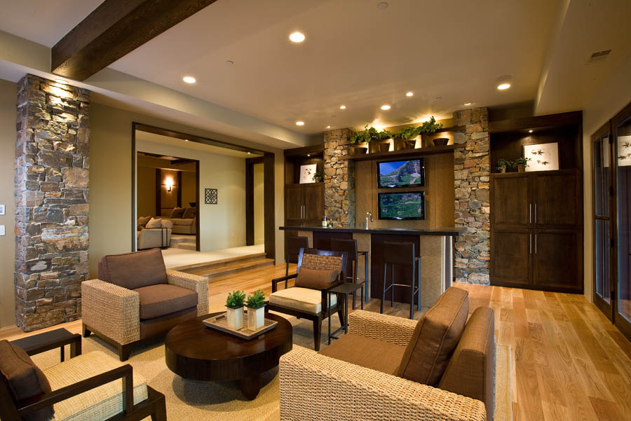 Особое внимание обратите на то, что мебель должна иметь высокую степень защищённости от влаги. Мебель для зоны гостиной должна быть удобной и функциональной. Лучше, если вы монтируете бытовую технику вместе с мебелью. Встроенная техника смотрится гораздо интереснее, чем обычная.