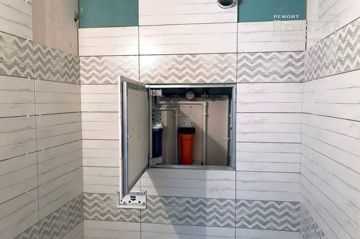 ΠΡΠΏΠΎΠ»Π½ΡΠ΅ΡΡΡ ΡΠ΅ΡΠ½ΠΎΠ²Π°Ρ ΡΠ°Π½ΡΠ΅Ρ Π½ΠΈΡΠ΅ΡΠΊΠ°Ρ ΡΠ°Π·Π²ΠΎΠ΄ΠΊΠ°. ΠΠΊΡΠ°ΡΠΈΠ²Π°ΡΡΡΡ Π²Π½ΡΡΡΠ΅Π½Π½ΠΈΠ΅ ΡΡΠ΅Π½Ρ Π±ΡΠ΄ΡΡΠ΅Π³ΠΎ ΡΠ°Π½ΡΠ΅Ρ Π½ΠΈΡΠ΅ΡΠΊΠΎΠ³ΠΎ ΡΠΊΠ°ΡΠ°. ΠΠΈΠ΄ΡΠΎΠΈΠ·ΠΎΠ»ΠΈΡΡΠ΅ΡΡΡ ΠΏΠΎΠ» ΡΠ°Π½ΡΠ·Π»Π°, Π²Π°Π½Π½ΠΎΠΉ ΠΈ Π΄ΡΡΠ³ΠΈΡ ΠΌΠΎΠΊΡΡΡ Π·ΠΎΠ½ Ρ ΠΏΠ΅ΡΠ΅Ρ Π»ΡΡΡΠΎΠΌ Π½Π° ΡΡΠ΅Π½Ρ. ΠΠΎΠ½ΡΠΈΡΡΡΡΡΡ ΡΠΈΠ»ΡΡΡΡ, Π²ΠΎΠ΄ΡΠ½ΡΠ΅ ΡΡΡΡΡΠΈΠΊΠΈ, ΡΠ°ΡΠΎΠ²ΡΠ΅ ΠΊΡΠ°Π½Ρ, ΡΠ΅Π³ΡΠ»ΡΡΠΎΡΡ Π΄Π°Π²Π»Π΅Π½ΠΈΡ, ΡΠΈΡΡΠ΅ΠΌΡ Π·Π°ΡΠΈΡΡ ΠΎΡ ΠΏΡΠΎΡΠ΅ΡΠ΅ΠΊ (ΡΠ»Π΅ΠΊΡΡΠΎΠ·Π°ΠΏΠΎΡΠ½Π°Ρ ΡΠΈΡΡΠ΅ΠΌΠ° ΠΊΡΠ°Π½ΠΎΠ²), ΡΡΡΡΠΎΠΉΡΡΠ²Π° ΠΊΠ°Π½Π°Π»ΠΈΠ·Π°ΡΠΈΠΎΠ½Π½ΠΎΠ³ΠΎ ΡΠ»ΠΈΠ²Π°, ΠΊΠΎΠ»Π»Π΅ΠΊΡΠΎΡΠ½ΡΠ΅ Π³ΡΡΠΏΠΏΡ (Π³ΡΠ΅Π±ΡΠ½ΠΊΠΈ), ΡΠ΅ΠΏΠ»ΠΎΠΈΠ·ΠΎΠ»ΠΈΡΡΡΡΡΡ ΡΡΠΎΡΠΊΠΈ, ΠΌΠΎΠ½ΡΠΈΡΡΠ΅ΡΡΡ ΠΈΠ½ΡΡΠ°Π»Π»ΡΡΠΈΡ ΠΏΠΎΠ΄ ΡΠ½ΠΈΡΠ°Π·. ΠΡΠΏΠΎΠ»Π½ΡΠ΅ΡΡΡ ΡΠ°Π·Π²ΠΎΠ΄ΠΊΠ° Π³ΠΎΡΡΡΠ΅Π³ΠΎ ΠΈ Ρ ΠΎΠ»ΠΎΠ΄Π½ΠΎΠ³ΠΎ Π²ΠΎΠ΄ΠΎΡΠ½Π°Π±ΠΆΠ΅Π½ΠΈΡ (ΡΠΏΠ°ΡΠ½Π½ΡΠ΅ ΠΏΠΎΠ»ΠΈΠΏΡΠΎΠΏΠΈΠ»Π΅Π½ΠΎΠ²ΡΠ΅ ΡΡΡΠ±Ρ) Π΄ΠΎ ΠΊΠΎΠ½Π΅ΡΠ½ΡΡ ΠΏΡΠΈΠ±ΠΎΡΠΎΠ² ΠΏΠΎΡΡΠ΅Π±Π»Π΅Π½ΠΈΡ — ΡΠ°ΠΊΠΎΠ²ΠΈΠ½Π°, Π²Π°Π½Π½Π°, Π΄ΡΡΠ΅Π²Π°Ρ, Π³ΠΈΠ³ΠΈΠ΅Π½ΠΈΡΠ΅ΡΠΊΠΈΠΉ Π΄ΡΡ, ΡΠ½ΠΈΡΠ°Π·, Π²ΠΎΠ΄ΠΎΠ½Π°Π³ΡΠ΅Π²Π°ΡΠ΅Π»Ρ (Π±ΠΎΠΉΠ»Π΅Ρ), ΠΌΠΎΠΉΠΊΠ°, ΠΏΠΎΡΡΠ΄ΠΎΠΌΠΎΠ΅ΡΠ½Π°Ρ ΠΌΠ°ΡΠΈΠ½Π° ΠΈ Π΄Ρ.
