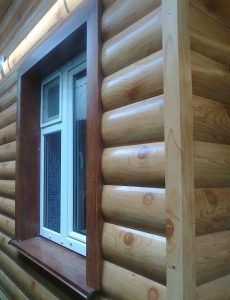 Очень красивой является отделка в виде блок-хауса. Это разновидность деревянной вагонки. Она имитирует оцилиндрованное бревно. Изготавливается облицовка исключительно из хвойных пород. Материал получается прочным и защищенным от воздействия внешней среды. Такой вариант наружной отделки деревянного дома отлично противостоит насекомым и легко поддается установке благодаря наличию замка шип-паз. Недостатком является лишь высокая стоимость.