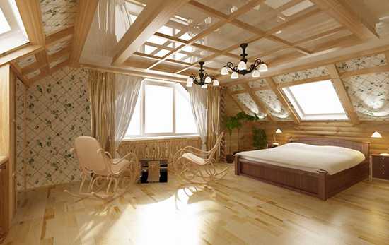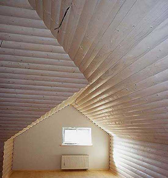 Отделка потолка в мансарде имитацией бруса