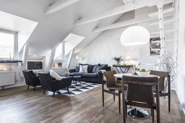 Если на вашей мансарде достаточно света, но вы не хотите затемнять ее обоями или краской, выбирайте оттенок серого для покраски стен и потолка.