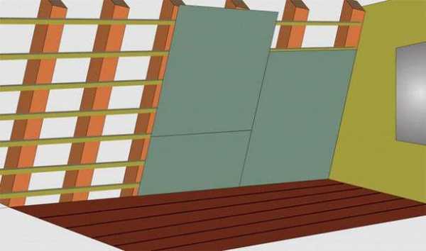 Комнату с низкими потолками визуально расширит вертикальная выкладка. Потребуется формирование обрешетки, однако результат стоит всех усилий. Также каркас нужен при излишне высоких потолках мансарды. На обрешетку подшить плашки, а в пространство за ними поместить утеплитель и изоляцию.