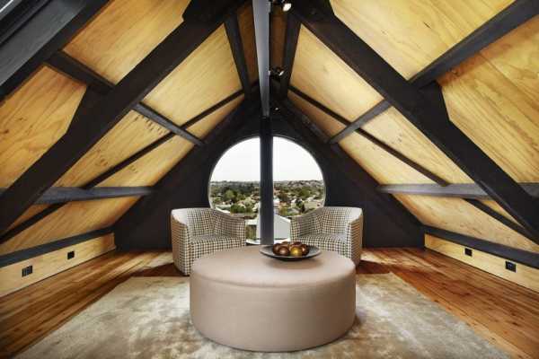 Специалисты советуют выбирать дизайн помещения в светлых тонах, особенно если крыша со скатами – так мансарда будет выглядеть просторнее, выше. При обшивании пространства между балками стропил, можно применять контрастные ламели, темные балки на фоне светлой обшивки выглядят особенно красиво.