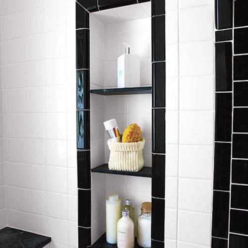 При наличии весьма толстой стены ниша для туалетных принадлежностей станет еще одним штрихом в креативной отделке.