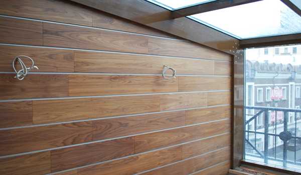Монтаж МДФ панелей на металлический профиль обеспечивает жесткое крепление, что препятствует удлинению панелей. В помещениях с заметными перепадами температуры и влажности, например на лоджии, это приводит к короблению отделки.