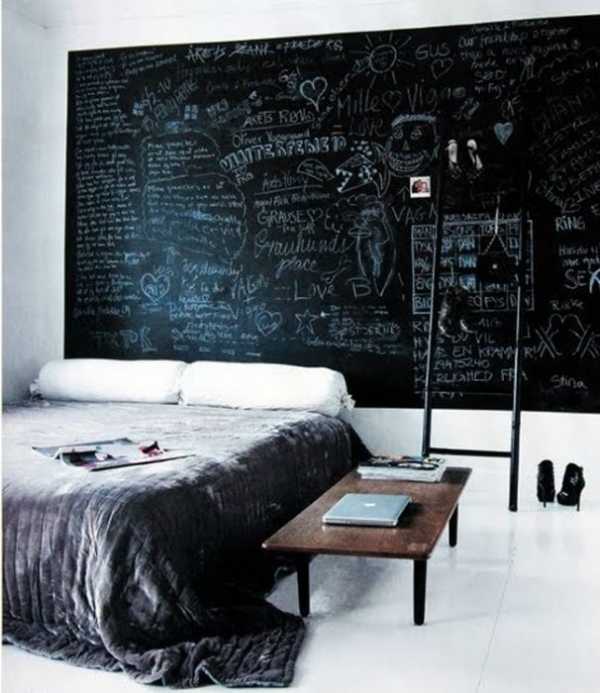 Краска, которая выглядит, как грифельная доска — модный тренд в дизайне интерьеров. Грифельное покрытие выглядит очень эффектно, легко моется и открывает море возможностей для творчества.