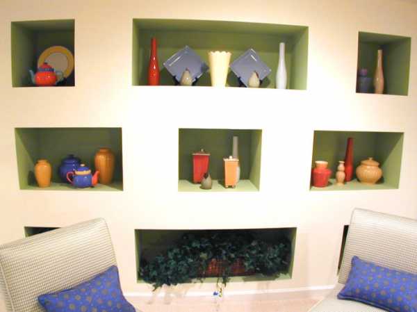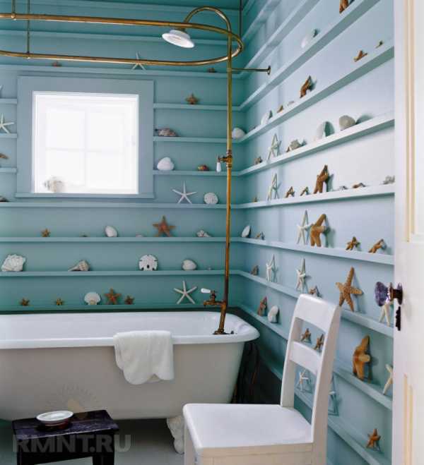 Главное в таком варианте — обустроить много узких полочек вдоль всех стен. А вот декорации на них можно будет менять в зависимость от настроения и времени года. Хотите лета — вот вам коллекция ракушек и морских звёзд. Зимой их могут заменить шишки, созданные собственными руками ёлочки и другие тематические поделки. А осенью — гербарий из красно-жёлтых листьев.