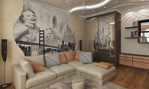 В гостиной это может быть панно, ниша или полностью стены, отделанные несколькими цветами на контрасте или в тон.