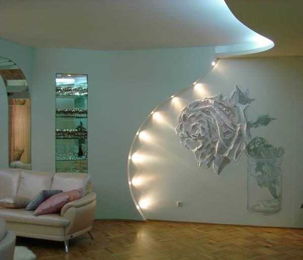 Сложные стеновые конструкции из гипсокартона – отделка, которую осуждает большинство дизайнеров. Но существуют примеры, когда гипсокартон в интерьере выглядит стильно. Чтобы остаться в рамках хорошего вкуса, рекомендуем при выборе формы конструкции проконсультироваться с профессионалами.