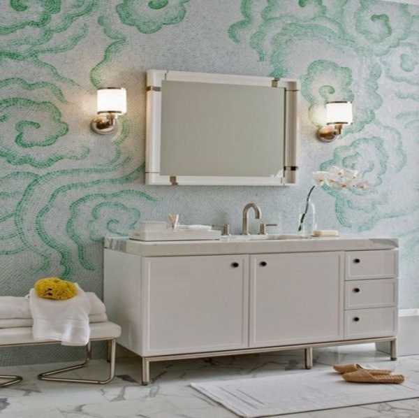 Классический вариант – мозаика в ванной комнате. Классический, потому что ванная не перегружена мебелью, декоративными элементами и, обычно, цветом, а значит, отвечать за характер пространства будут стены. Обратите внимание на керамическую мозаику, с которой отлично сочетаются плитка и кафель, а также на стеклянную – она обладает водоотталкивающим свойством. Вариантов развития событий здесь несколько: одна мозаичная стена, а другие, к примеру, плиточные; все четыре стены отделаны мозаикой, но на одной присутствует орнамент, лаконичный узор или какой-то сюжет; отделайте мозаикой стены, образующие угол, а другие пусть будут менее замысловатыми.