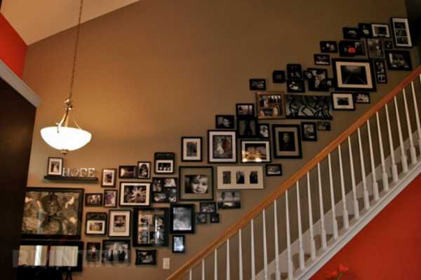 Классика в чистом виде. Традиционные семейные фото, без всякого фотошопа и дополнительных изысков, в строгих рамах. Поднимаясь по вашей лестнице, гости смогут изучить всё семейное древо, увидеть, как вы выглядели в третьем классе и так далее. Стена с таким декором никогда не будет выглядеть скучно, постоянно обновляясь по мере появления новых членов семьи и происходящими с ними событиями.