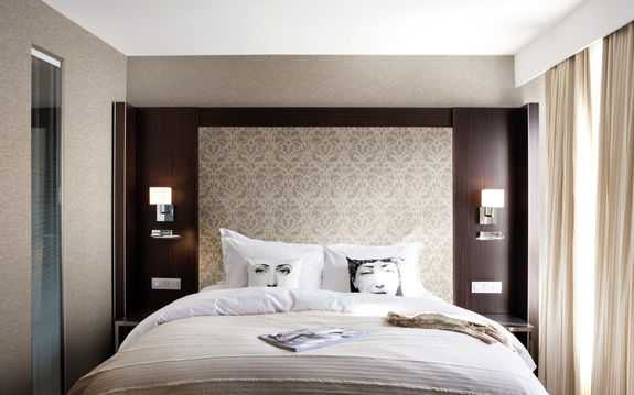В спальне, как правило, декорируют изголовье кровати, выделяя его в отдельный элемент дизайна. Кожей покрывают либо участок стены, либо всю стену изголовья. Вошли в моду мозаичные переплеты из материалов двух цветов.