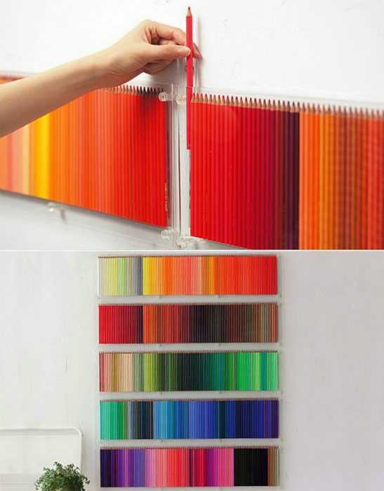 Цветные карандаши — простой и очень необычный способ украшения стен.