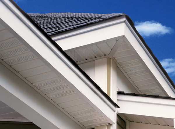 Вертикальные стенки вдоль карниза, подшитые неперфорированными софитными панелями.