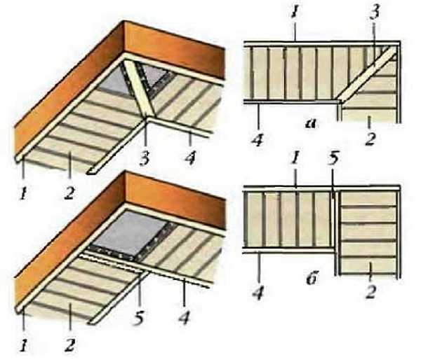- Здесь же стоит рассмотреть и оформление угловых зон отвеса. Они могут быть обшиты на косой или прямой угол, как показано на рисунке.
