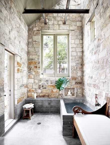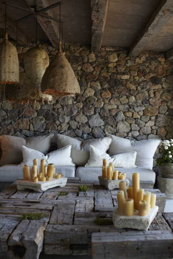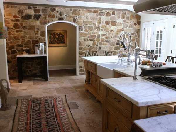 Если по каким-то причинам вы не можете обеспечить достаточное освещение, то следует выбирать светлые оттенки камня либо использовать отделку фрагментарно (арочная зона, кусочек стены помещения). Если в помещении есть фонтан, то более изысканно он будет выглядеть на фоне каменной стены.