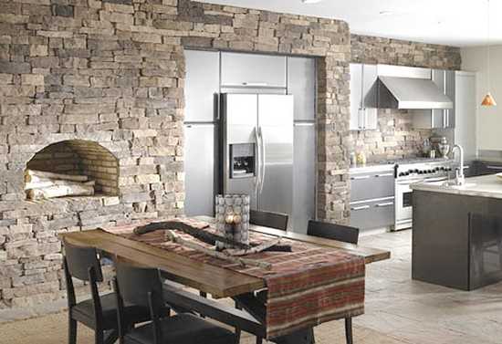 Тем не менее, украшение интерьера кухонного помещения отдельными фрагментами любых материалов — довольно распространенное явление, даже вошедшее в моду в последнее время.